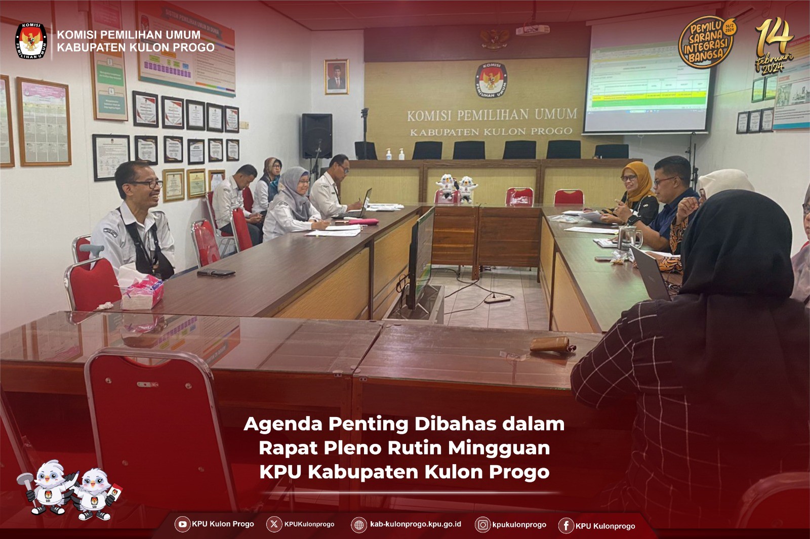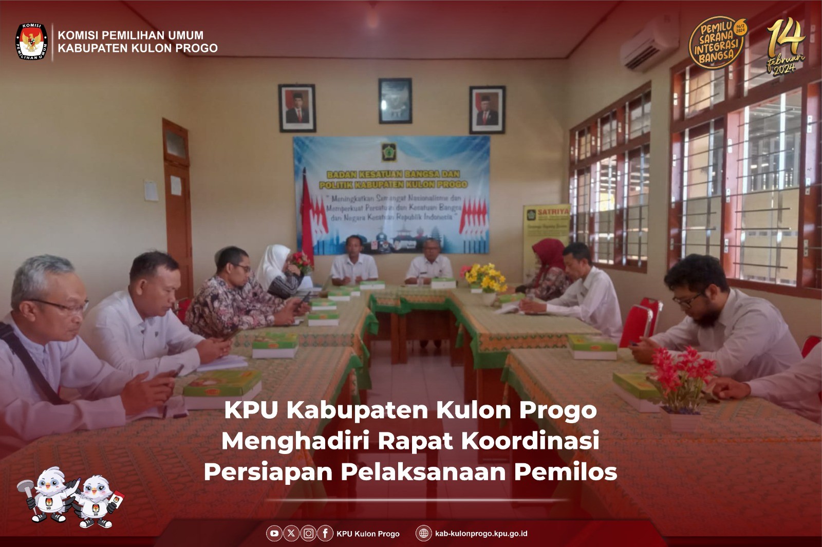 Kulon Progo – KPU Kabupaten Kulon Progo menghadiri Rapat Koordinasi Persiapan Pelaksanaan Pemilos (Pemilihan OSIS) Serentak tahun 2023 pada Hari Rabu, 20 September 2023 di Kantor Badan kesatuan Bangsa dan Politik (Kesbangpol). Rapat dihadiri oleh Ketua Divisi Partisipasi Masyrakat dan kesekretariatan KPU Kabupaten Kulon Progo. Dalam Rakor tersebut turut dihadiri juga oleh Dinas Pendidikan Pemuda dan Olahraga, Dinas Komunikasi dan Informatika, Kepala Kemenag Kabupaten Kulon Progo, Ketua MKKS SMA, Ketua MKKS SMK, Kepala MKKS SMP, Kepala MKKS MA, dan Kepala MKKS MTS Kabupaten Kulon Progo. Rakor dibuka dengan pemaparan progres Pemilos hingga saat ini (20/9) oleh Mudopati Purbohandowo, SSTP, Kepala Bidang Politik Dalam Negeri dan Organisasi Kemasyrakatan Badan Kesatuan Bangsa dan Politik. Mudopati mengatakan, “Partisipasi sekolah dalam tahapan pemilos ini semakin menurun ditunjukan dengan data DPT yang diunggah dalam aplikasi masih sangat sedikit". Hidayatut Thoyyibah dalam memberikan tanggapan pemaparan dari Mudopati menyampaikan, “Kita harus mencari solusi supaya antusias dari siswa dan sekolahan dapat naik Kembali.” Dari Diskominfo menyampaikan, sistem dalam aplikasi sudah mengalami banyak perbaikan yang memudahkan. Kepala MKKS MA Kabupaten Kulon Progo, sekaligus Kepala Madrasah MAN 2 Kulon Progo, Hartiningsuh, S.Pd, M.Pd menanggapi positif pelaksanaan Pemilos menerangkan “MAN 2 Kulon Progo menjadikan Pemilos sebagai sarana implementasi P5 (Projek Penguatan Profil Pelajar Pancasila), karena itu, MAN 2 Kulon Progo memasukan Pemilos sebagai agenda sekolah. Pada akhir Rapat Koordinasi, Mudopati mengajak para koordinator dari MKKS untuk menggiatkan Kembali kegiatan pemilos dan mengagendakan minggu depan melakukan Rapat Koordinasi Kembali. (Zar)
