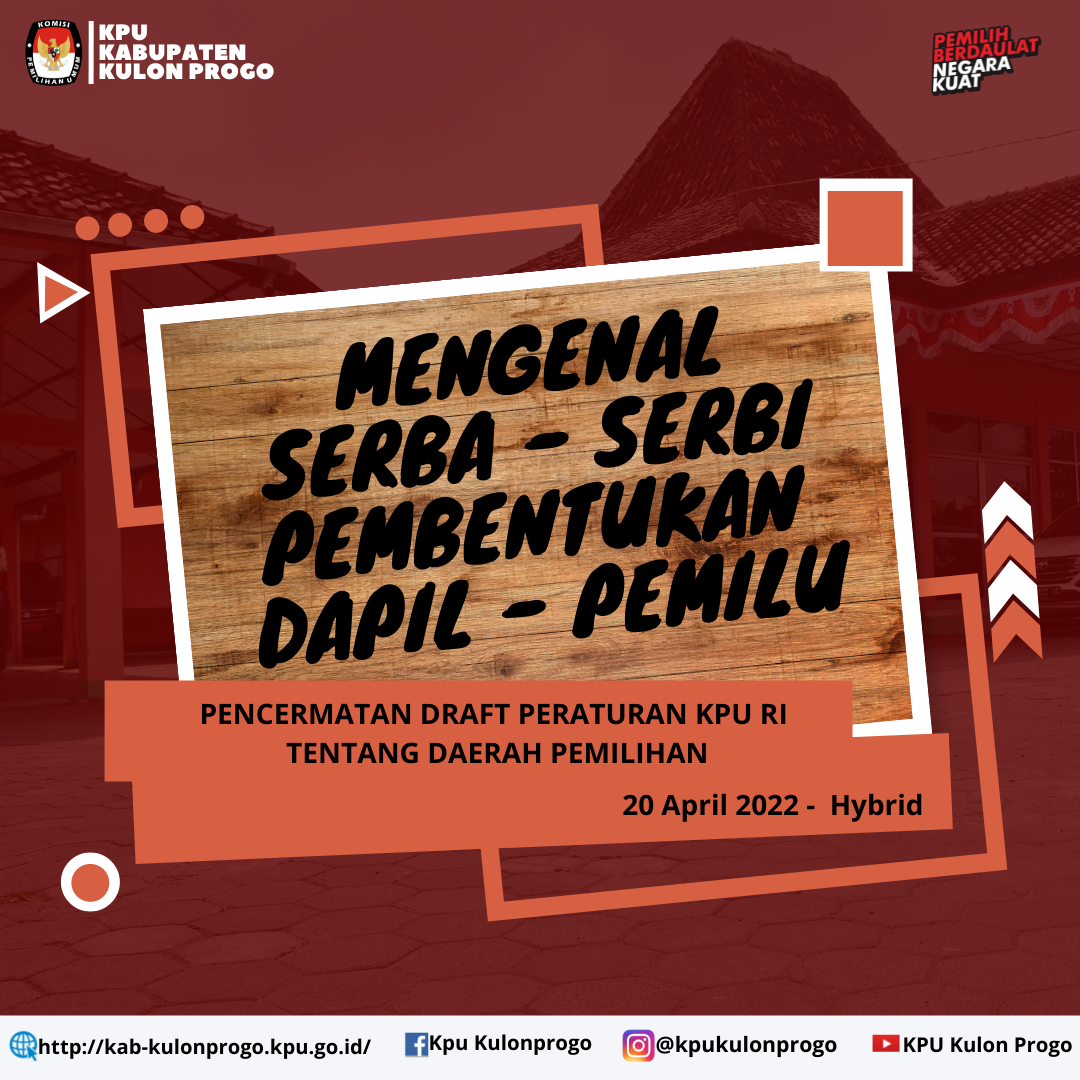 Menjelang tahapan bergulir, KPU Kabuapten Kulon Progo melaksanakan Pembahasan Draft Peraturan KPU tentang Pembentukan Daerah Pemilihan (Dapil). Pada acara yang bertempat di RPP, (20/04) dihadiri oleh semua Komisioner dan semua unsur Sekretariat KPU Kabupaten Kulon Progo dengan metode hybrid. Tri Mulatsih selaku Ketua Divisi Teknis Penyelenggara memaparkan mekanisme Pembentukan Dapil dengan membuat komparasi antara PKPU Pembentukan Dapil pada Pemilu 2019 dengan draft PKPU yang akan disusun oleh KPU RI. Menurut Tri, pembentukan Dapil untuk Pemilu 2024 ini tetap memperhatikan Daerah Pemilihan yang sudah ada sebagaimana Pemilu sebelumnya, kecuali apabila alokasi kursi pada Daerah Pemilihan tersebut melebihi batasan maksimal alokasi kursi setiap Daerah Pemilihan atau apabila bertentangan dengan tujuh prinsip dalam pembentukan Dapil. Tujuh prinsip itu adalah Kesetaraan Nilai Suara, Ketaatan pada Sistem Pemilu yang Proporsional, Proporsionalitas, Integralitas Wilayah, berada dalam Cakupan Wilayah yang sama, Kohesivitas dan Kesinambungan. Pembahasan dilanjutkan dengan simulasi penghitungan pembentukan Dapil yang dipandu oleh Kepala Sub Bagian Teknis, Partisipasi dan Hubungan Masyarakat Sekretariat KPU Kabupaten Kulon Progo, Saptati Wulandari. Pada sesi ini, Saptati berharap semua SDM di lingkungan Sekretariat KPU Kabupaten Kulon Progo paham betul dalam hal penghitungan pembentukan Dapil. Pada akhir kegiatan, Muryono Puja Rasa Satuhu memberikan masukan terkait penghitungan angka di belakang koma. Artinya adanya pembulatan ke atas pada hasil BPPd dari bilangan yang berasal dari jumlah penduduk yang dibagi dengan jumlah kursi yang tersedia. Puja Rasa menganggap adapun apabila dilakukan pembulatan ke bawah akan berdampak pada jumlah penduduk yang hilang keterwakilannya. (pras) #KPUMelayani #Pemilu2024Siap