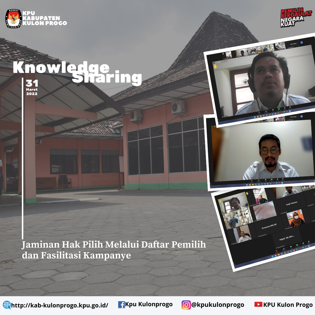 Knowledge Sharing tidak hanya rutin dilaksanakan oleh KPU DIY tetapi KPU Kabupaten Kulon Progo juga melaksanakannya. Hal ini merupakan upaya untuk memberikan pencerahan dan menambah wawasan kepada jajaran KPU Kabupaten Kulon Progo dalam menyelenggarakan Pemilu dan Pemilihan Tahun 2024 nanti.