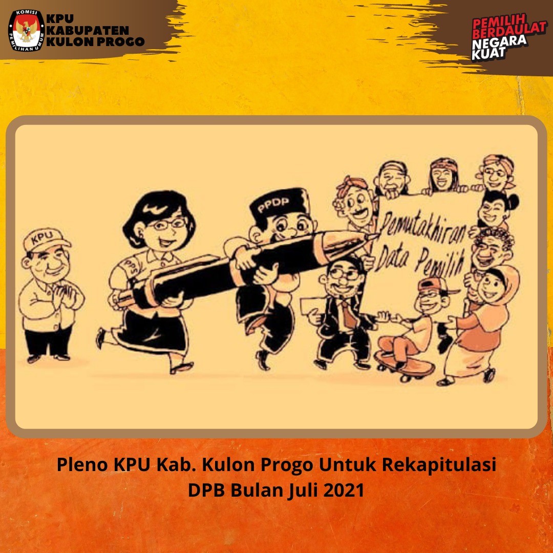 Hasil Pleno Pemutakhiran Daftar Pemilih Berkelanjutan Bulan Juli 2021 yang dilaksanakan tanggal 27 Juli 2021, menetapkan Jumlah pemilih berkelanjutan di Kabupaten Kulon Progo sebanyak 334.817 dengan rincian laki-laki sebanyak 162.522, dan pemilih perempuan sebanyak 172.295. Data tersebut bersumber dari Dinas Dukcapil Kulon Progo, Badan Pengawas Pemilu Kabupaten Kulon Progo, Balai Dikmen Kulon Progo, Kantor Kemenag Kabupaten Kulon Progo, Kantor Kecamatan dan Desa di wilayah Kulon Progo, serta dari masukan masyarakat. Pleno tersebut dihadiri oleh seluruh Komisioner, Sekretaris, Kasubag, dan Staf pelaksana di lingkungan KPU Kabupaten Kulon Progo. Adapun untuk link rincian rekapitulasi DPBbulan Juli 2021 silahkan klik disini
