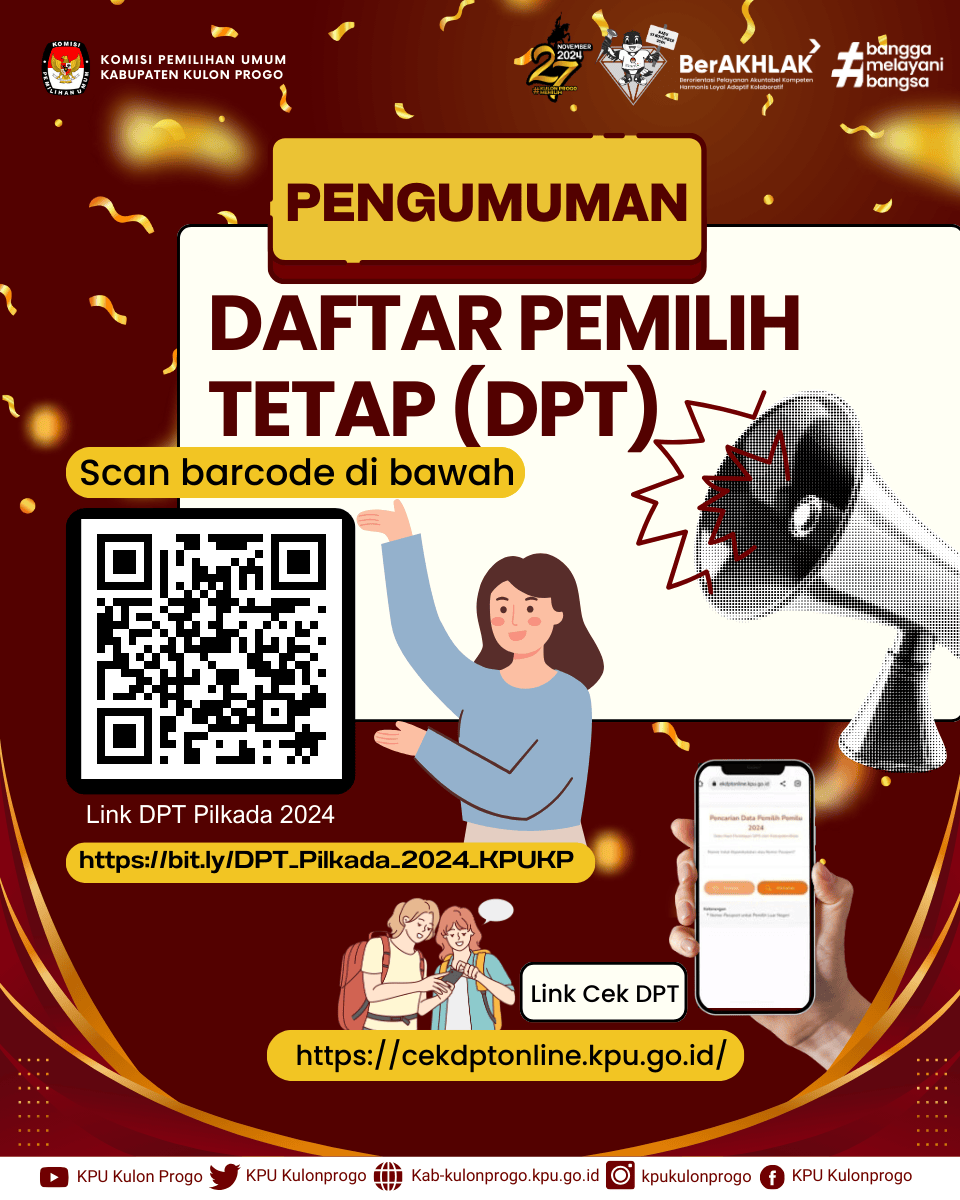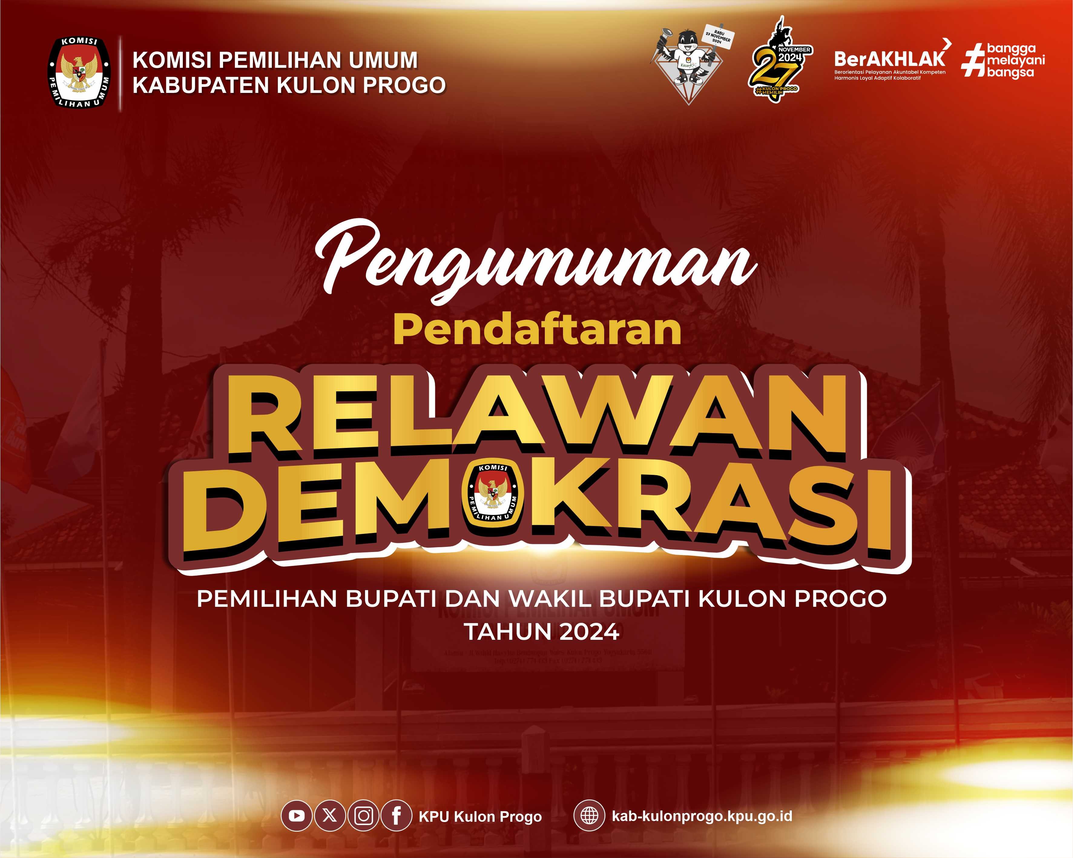 #TemanPemilih, berikut adalah Pengumuman Pendaftaran Relawan Demokrasi pada Pemilihan Bupati dan Wakil Bupati Kulon Progo Tahun 2024.