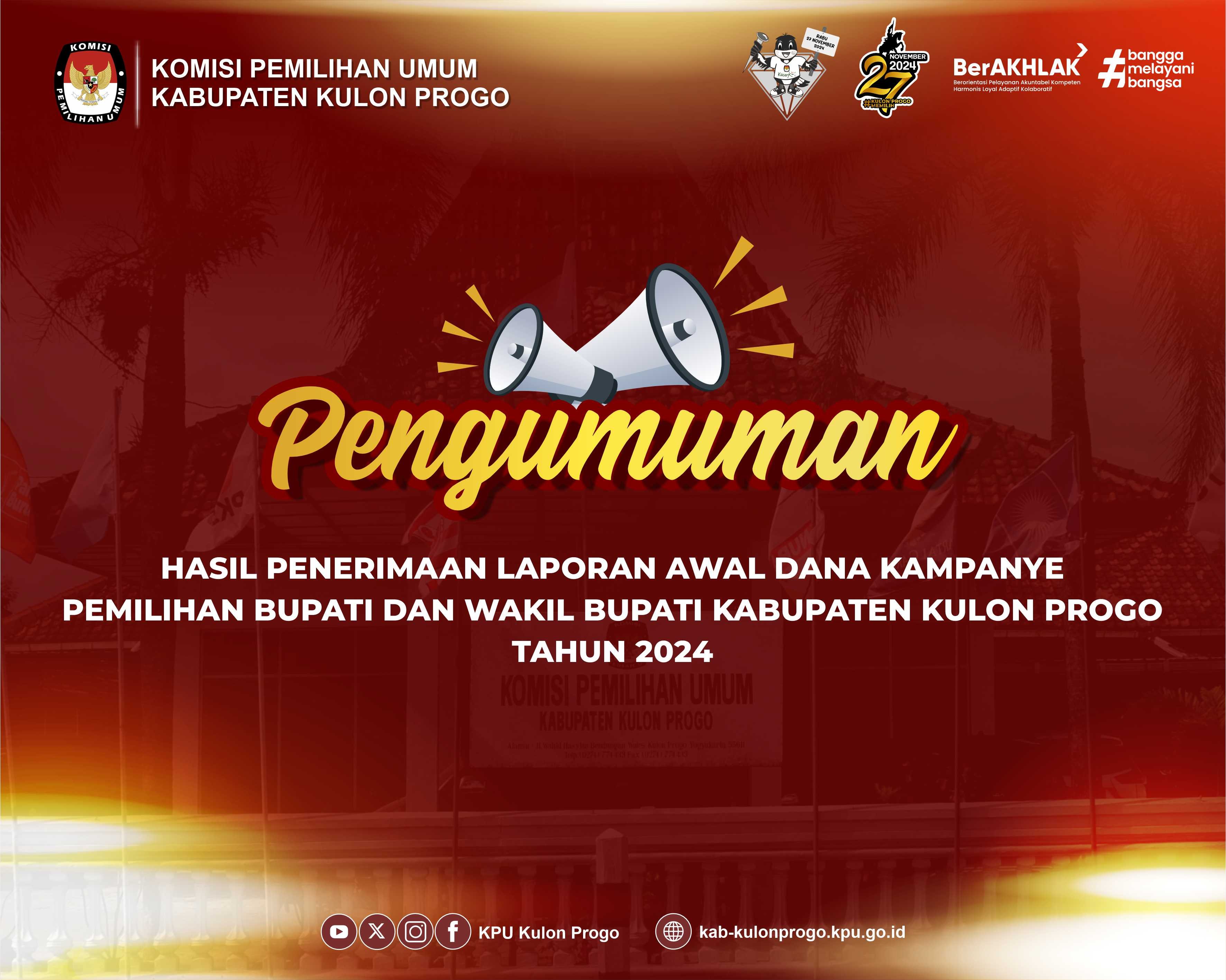 #TemanPemilih, berikut adalah Pengumuman Hasil Penerimaan Laporan Awal Dana Kampanye Pemilihan Bupati dan Wakil Bupati Kabupaten Kulon Prpgo Tahun 2024