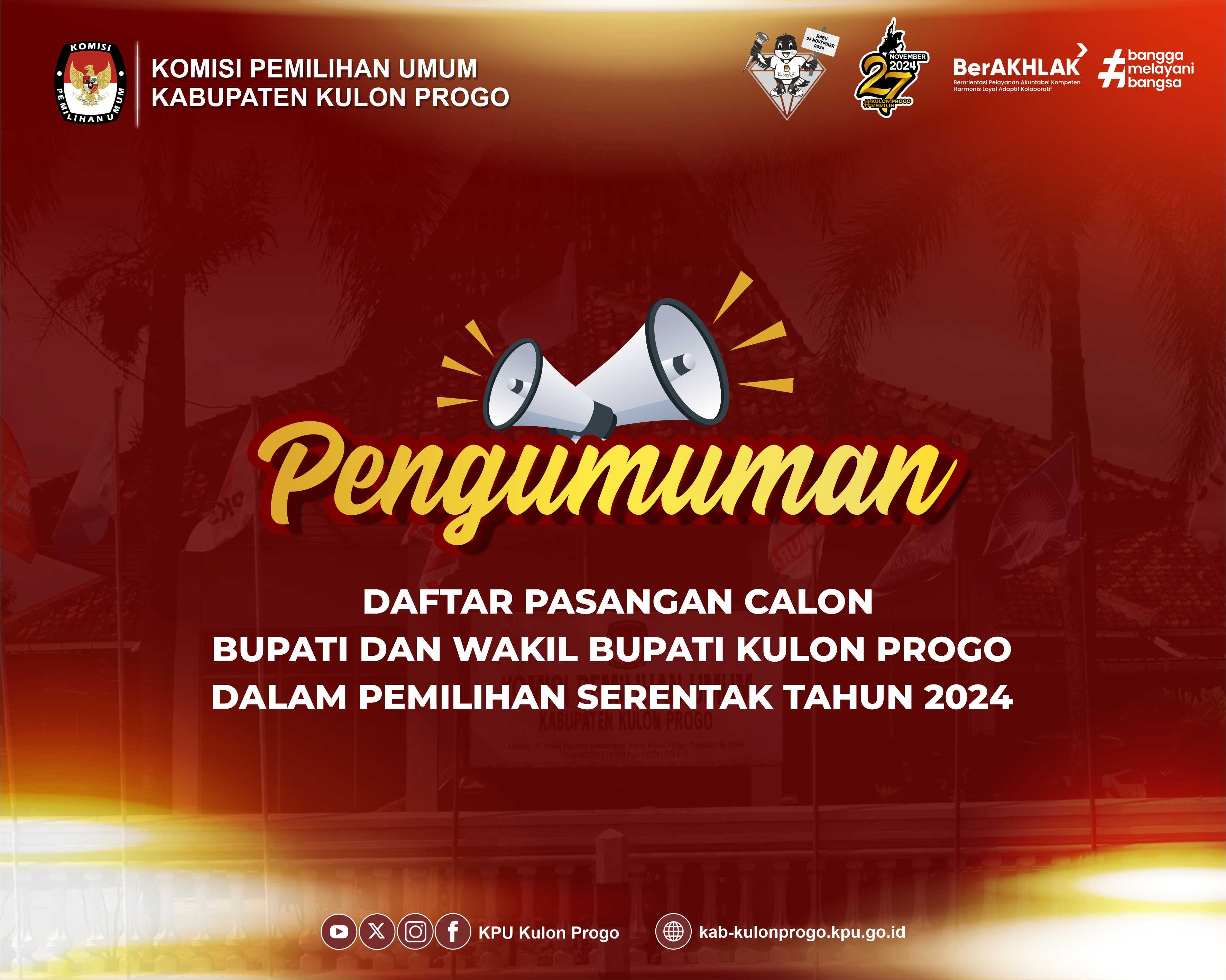 #TemanPemilih, berikut adalah Pengumuman Daftar Pasangan Calon Bupati dan Wakil Bupati Kulon Progo dalam Pemilihan Serentak Tahun 2024
