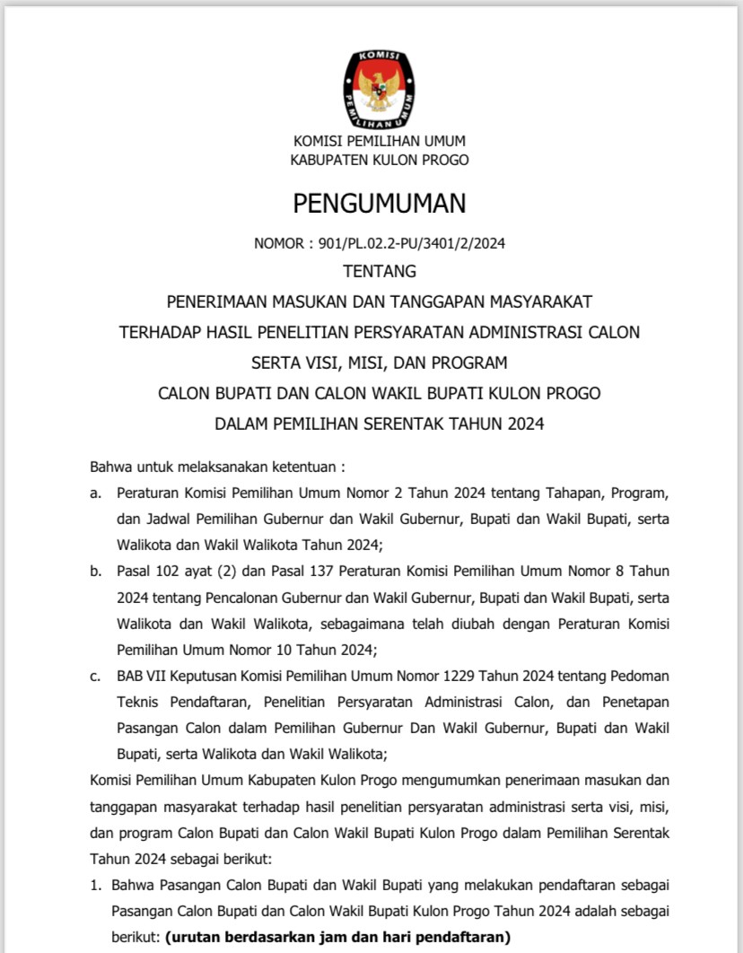 Sehubungan dengan akan dilaksanakannya kegiatan Market Sounding dalam rangka pengadaan logistik Pemilihan Tahun 2024 pada acara Rapat Koordinasi dan Bimbingan Teknis Persiapan Pengadaan Logistik Pemilihan Gubernur dan Wakil Gubernur, Bupati dan Wakil Bupati, serta Walikota dan Wakil Walikota Tahun 2024, KPU RI mengundang para pelaku usaha secara luring dan daring pada: