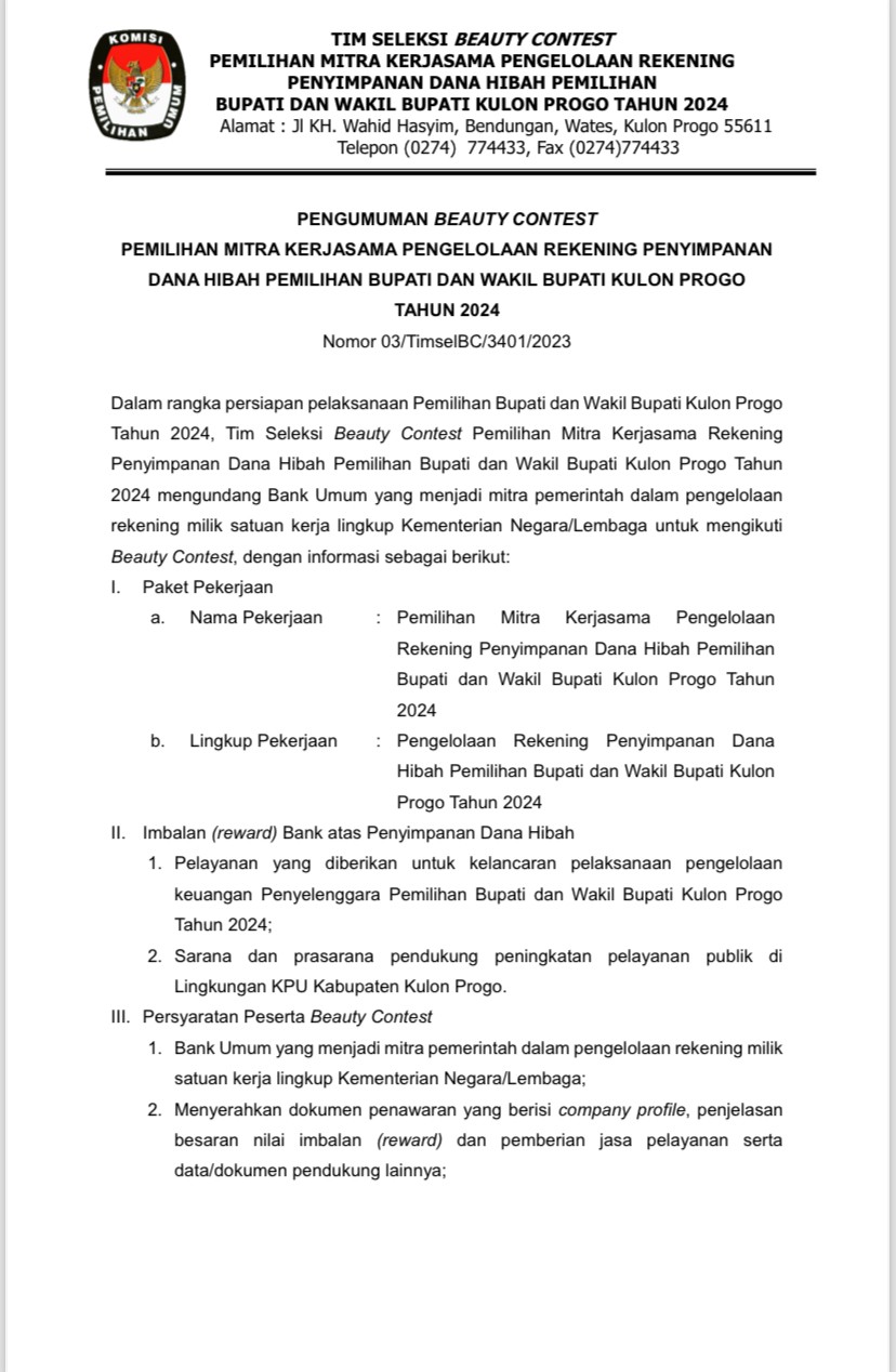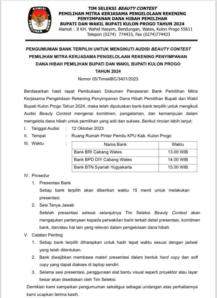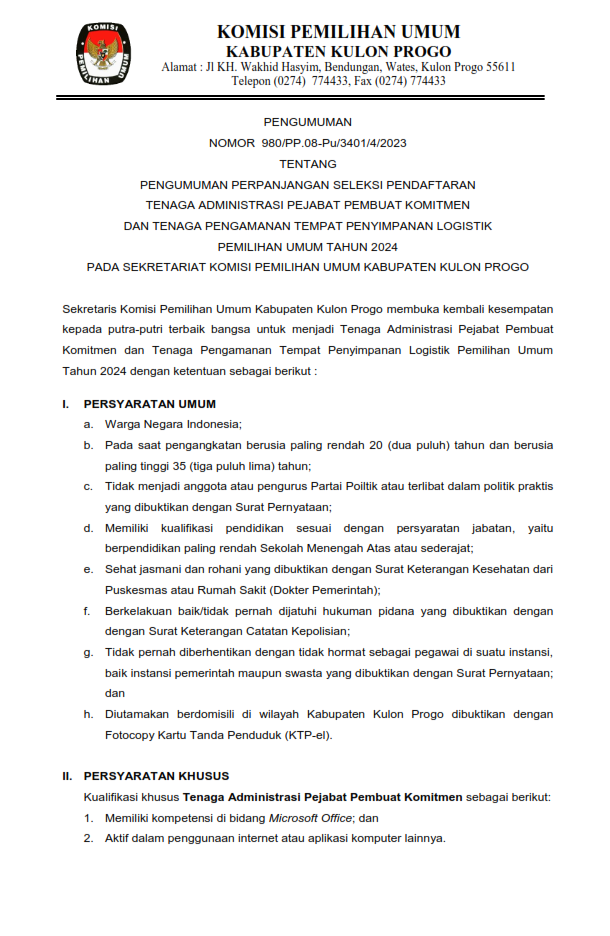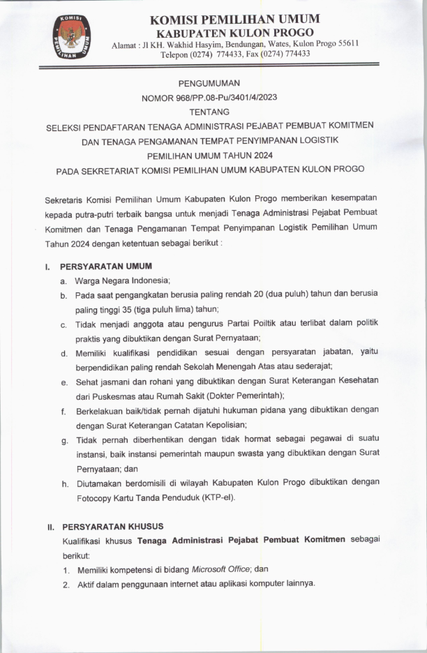 Masyarakat dapat menyampaikan masukan dan tanggapan terhadap Daftar Calon Sementara (DCS) Anggota PRD Kabupaten Kulon Progo pada tanggal 19-28 Agustus 2023.