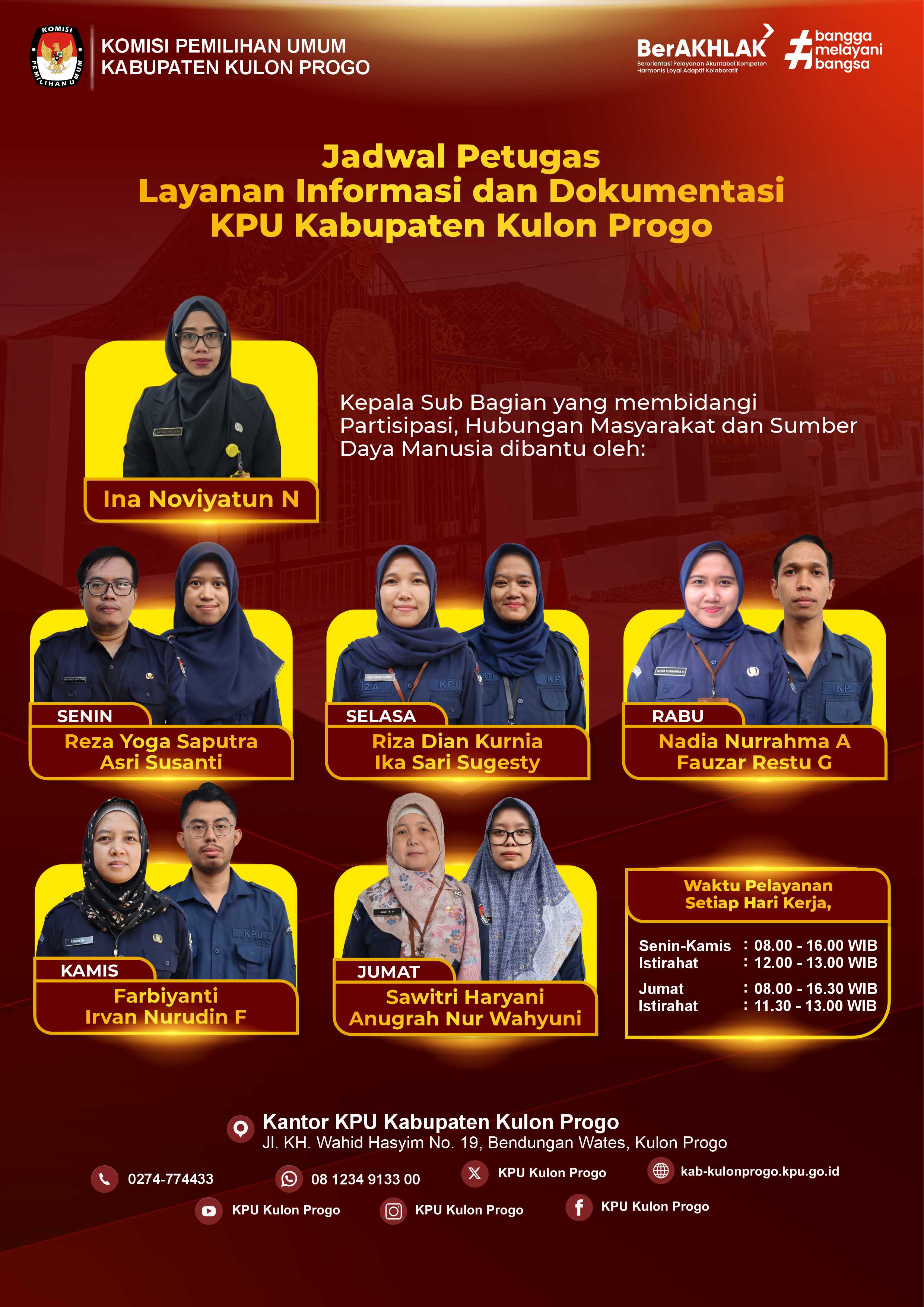 5. Jadwal Petugas Layanan Informasi Publik Pejabat Pengelola Informasi dan Dokumentasi (PPID) Komisi Pemilihan Umum Kabupaten Kulon Progo: