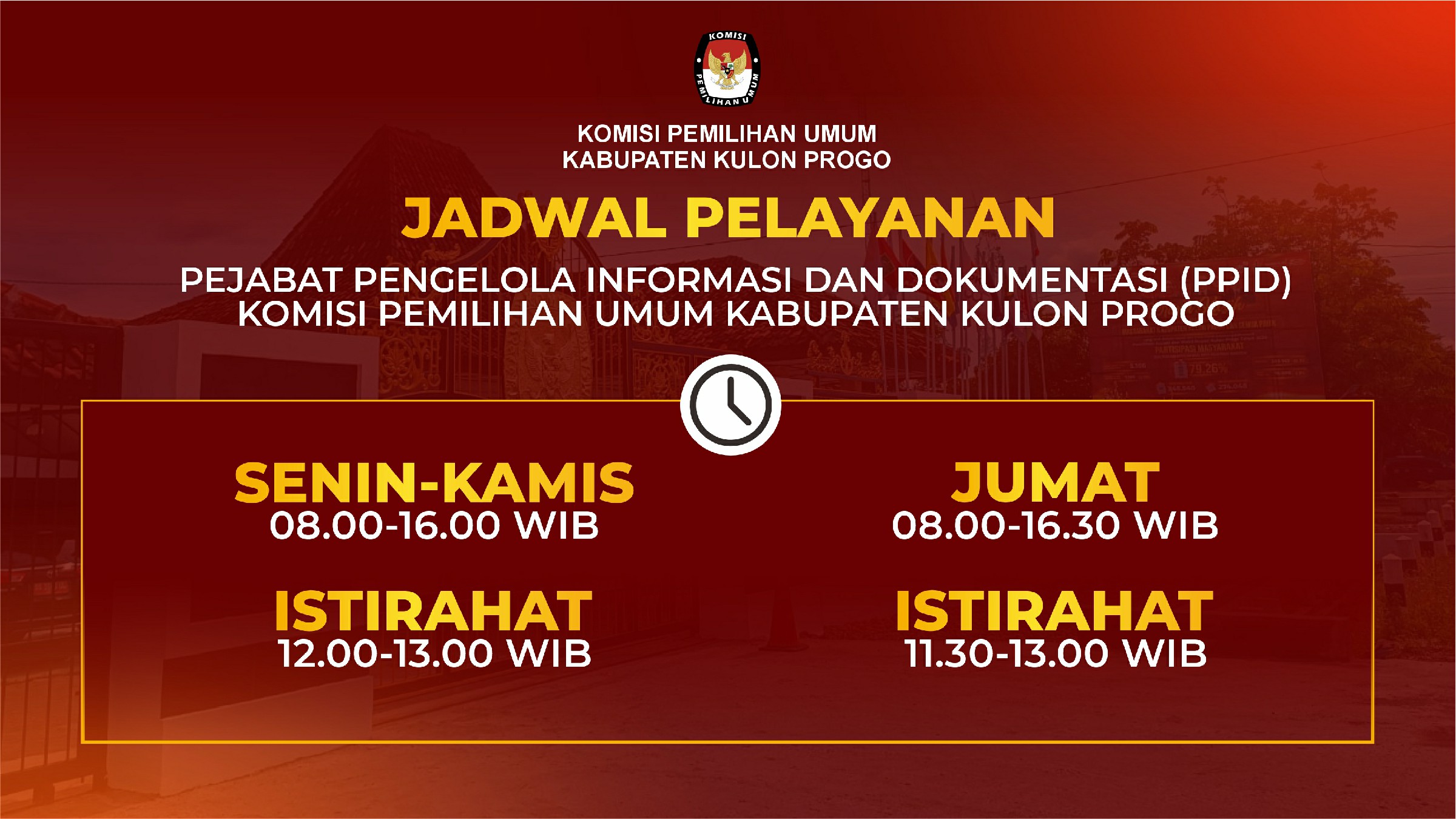 4. Jam pelayanan informasi PPID KPU Kabupaten Kulon Progo sebagai berikut: